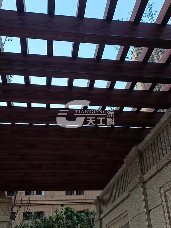 居住小區(qū)園林生態(tài)自然景觀,如綠色植物、花木搭配等,也是主要考慮因素之一。木紋漆施工后,如木廊亭、花架、座椅、過道等景觀建筑不僅實(shí)現(xiàn)了生活綠化,而且滿足了居民的生活,為生活在喧鬧城市的人們創(chuàng)造了一個(gè)接近自然、生態(tài)良好的溫馨家園。此外,木紋漆的施工成本相對(duì)較低,投資少,維護(hù)簡(jiǎn)單,實(shí)現(xiàn)了社區(qū)規(guī)劃設(shè)計(jì)與當(dāng)?shù)仫L(fēng)俗文化氛圍的融合。