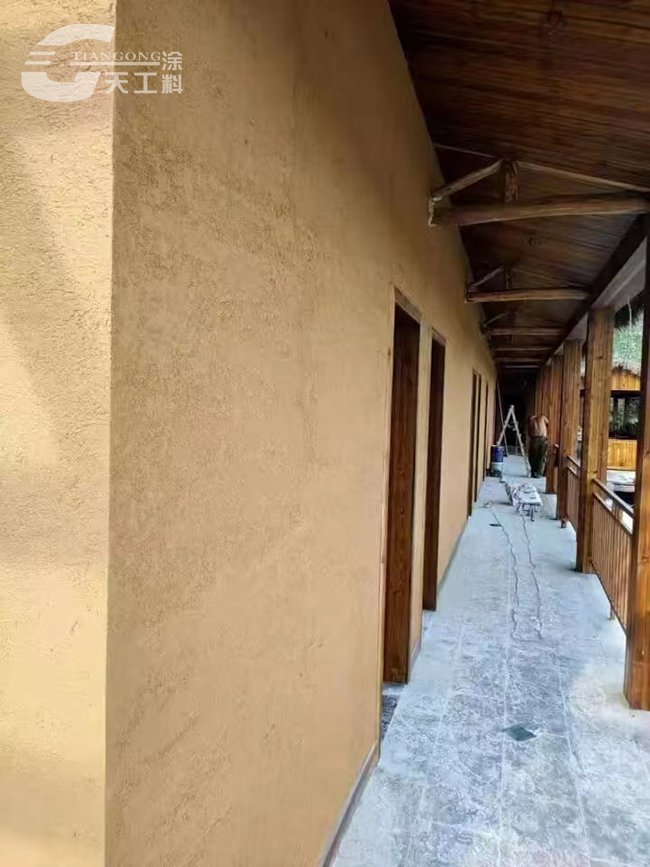 鄉(xiāng)村民宿外墻裝飾稻草漆效果