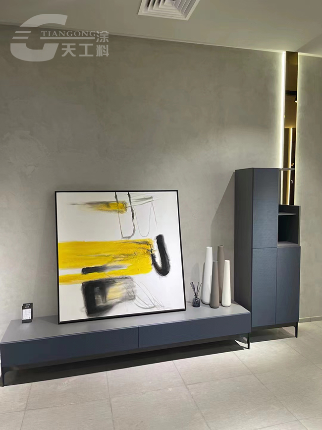 3、水泥漆可以以其獨(dú)特的藝術(shù)魅力制作出自然的藝術(shù)墻。簡約、自然、增加建筑空間感,是喜歡簡約、自然室內(nèi)效果的首選。