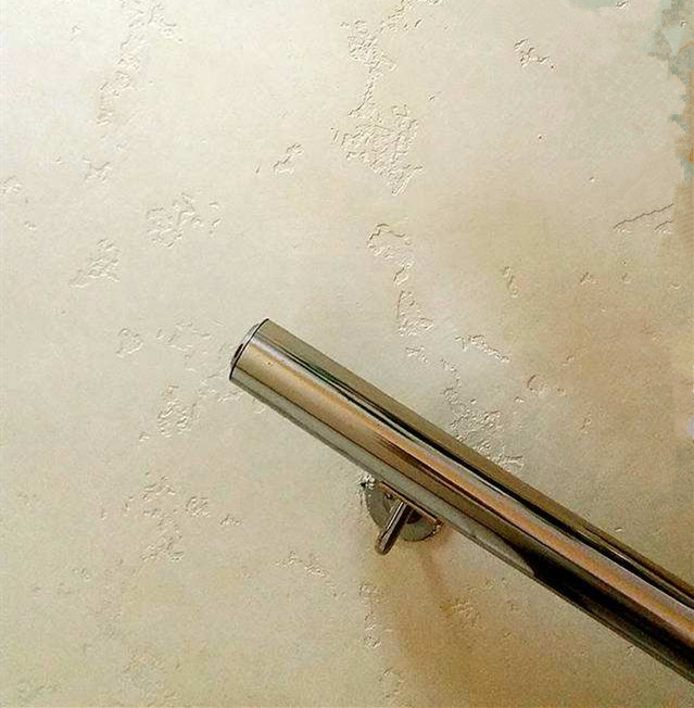 2、用圓頭不銹鋼泥鏟以規(guī)則的方式批刮瑪曼奴材料,干燥后進(jìn)行第二遍工藝施工,這一步可根據(jù)不同飾面效果進(jìn)行不同的工藝操作手法,工具尺寸不同效果也會不同。