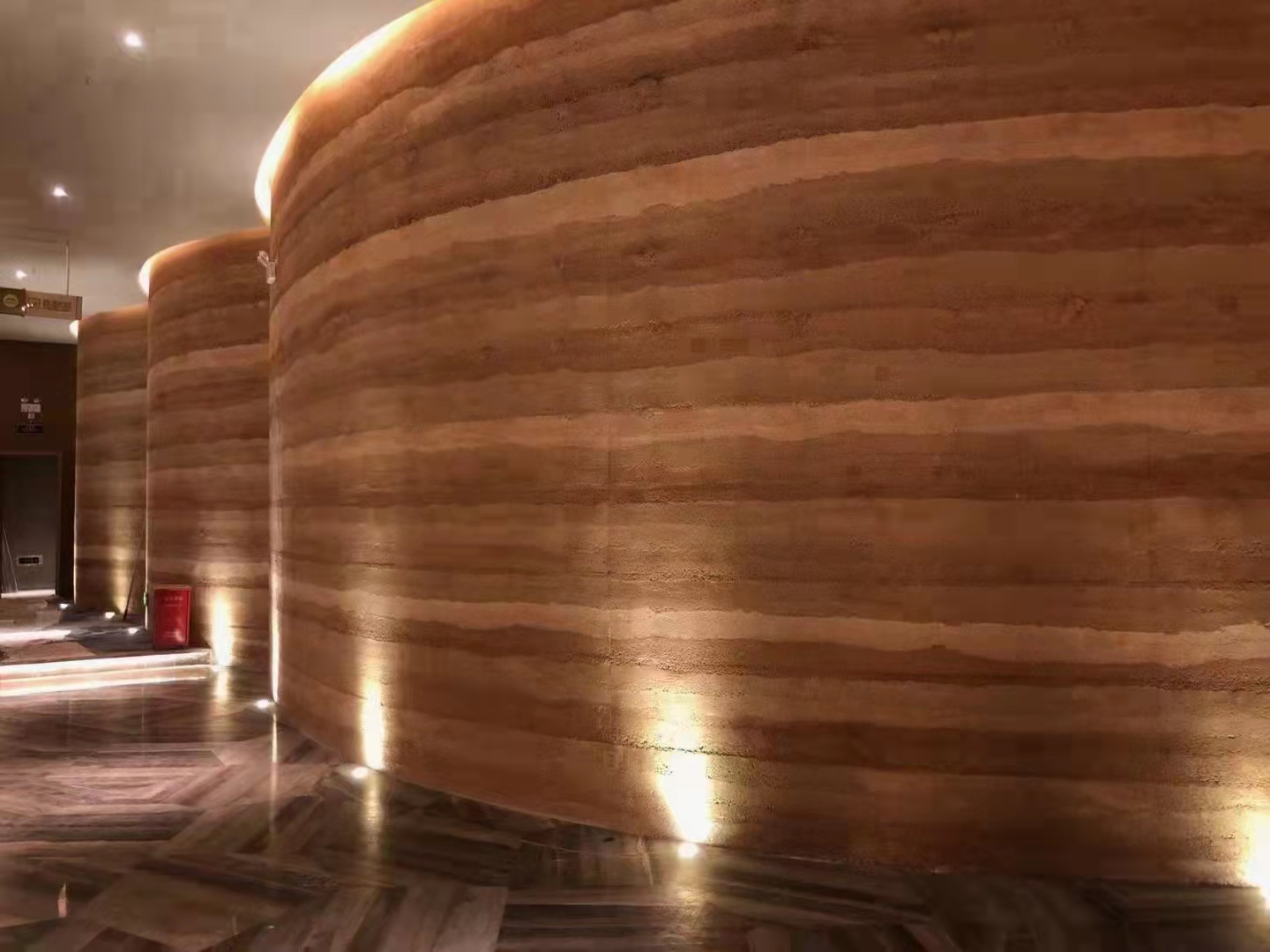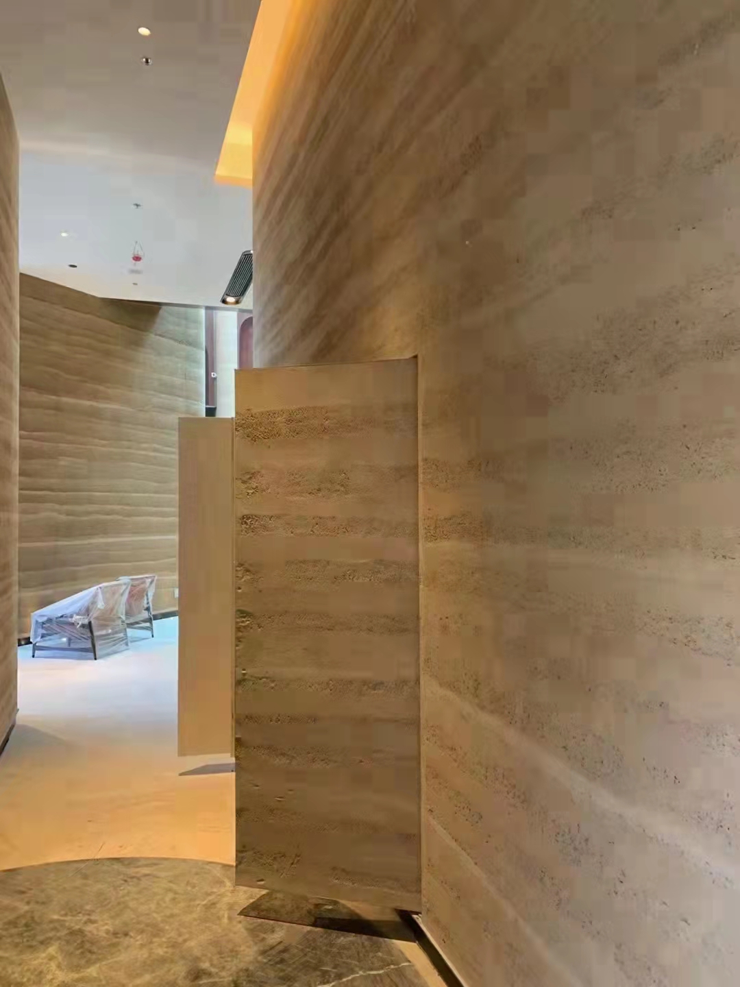 批刮天工夯土漆材料,第一遍先做夯土基地效果,收光后進(jìn)行第二遍效果處理,8成干收光處理,施工講究自然隨意
